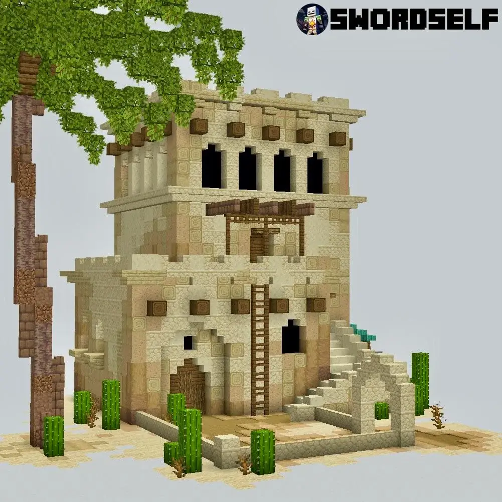 A estrutura, publicada por um usuário da comunidade, usa tons de areia, pedra lisa e arenito, integrando-se perfeitamente ao cenário. Em vez de contrastar com o bioma, a construção parece crescer a partir dele. Essa escolha torna a casa uma inspiração para quem busca criar algo autêntico e bonito ao mesmo tempo.